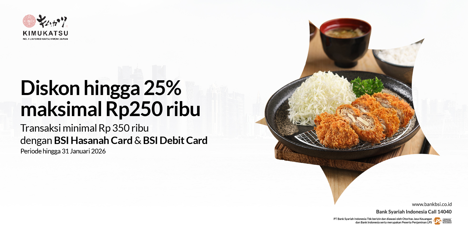 BSI Card - Dapatkan Diskon hingga 25% di Kimukatsu