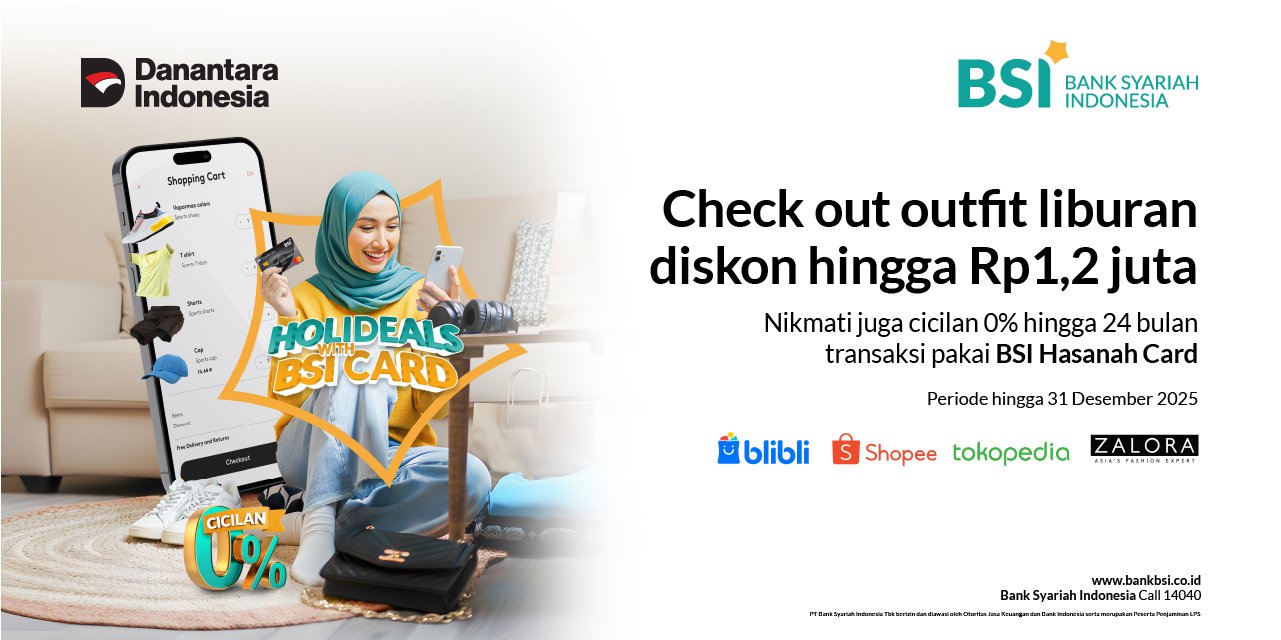 | Diskon hingga Rp 100 ribu dengan BSI Visa Debit Online | Debit Visa | Hingga 31 Desember 2025 |