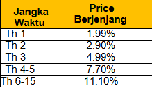 Bebas Biaya Administrasi Biaya Biaya Appraisal* Bebas Biaya Provisi Biaya KPR Bisa diangsur selama jangka waktu pembiayaan? |