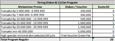 | 2 | Program ini berlaku dimana saja? | Seluruh Store Top Golf |