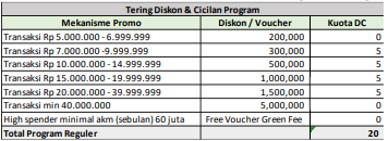 | 4 | Deskripsi Program | Program promo potongan langsung hingga Rp 5 juta dan cicilan 0% hingga 12 bulan dengan BSI Hasanah Card dan BSI Debit Visa Card |