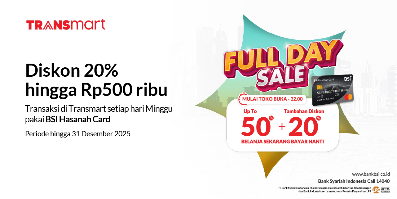| Mekanisme Program | Diskon akan memotong nominal secara langsung ketika pemegang kartu melakukan pembayaran sesuai syarat dan ketentuan program di store Transmart dengan menggunakan BSI Card. |