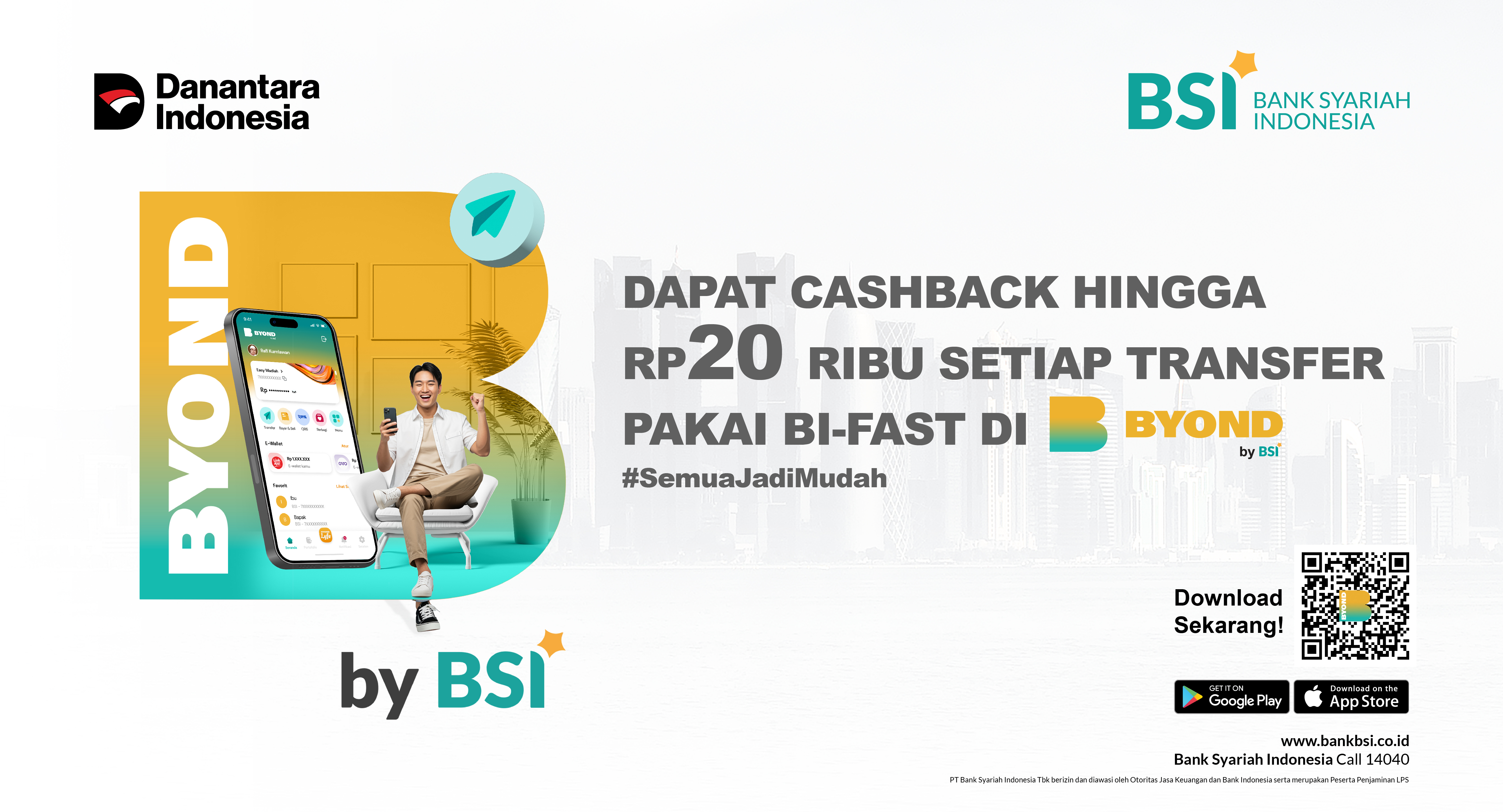 | Deskripsi Program | Program pemberian cashback biaya admin senilai Rp 2.500,- / transaksi hingga Rp 20.000 untuk 8 kali transaksi kepada setiap Nasabah yang mendapatkan penawaran melalui pesan notifikasi pada BYOND by BSI dan melakukan Transfer via BI Fast di BYOND by BSI selama periode program |
