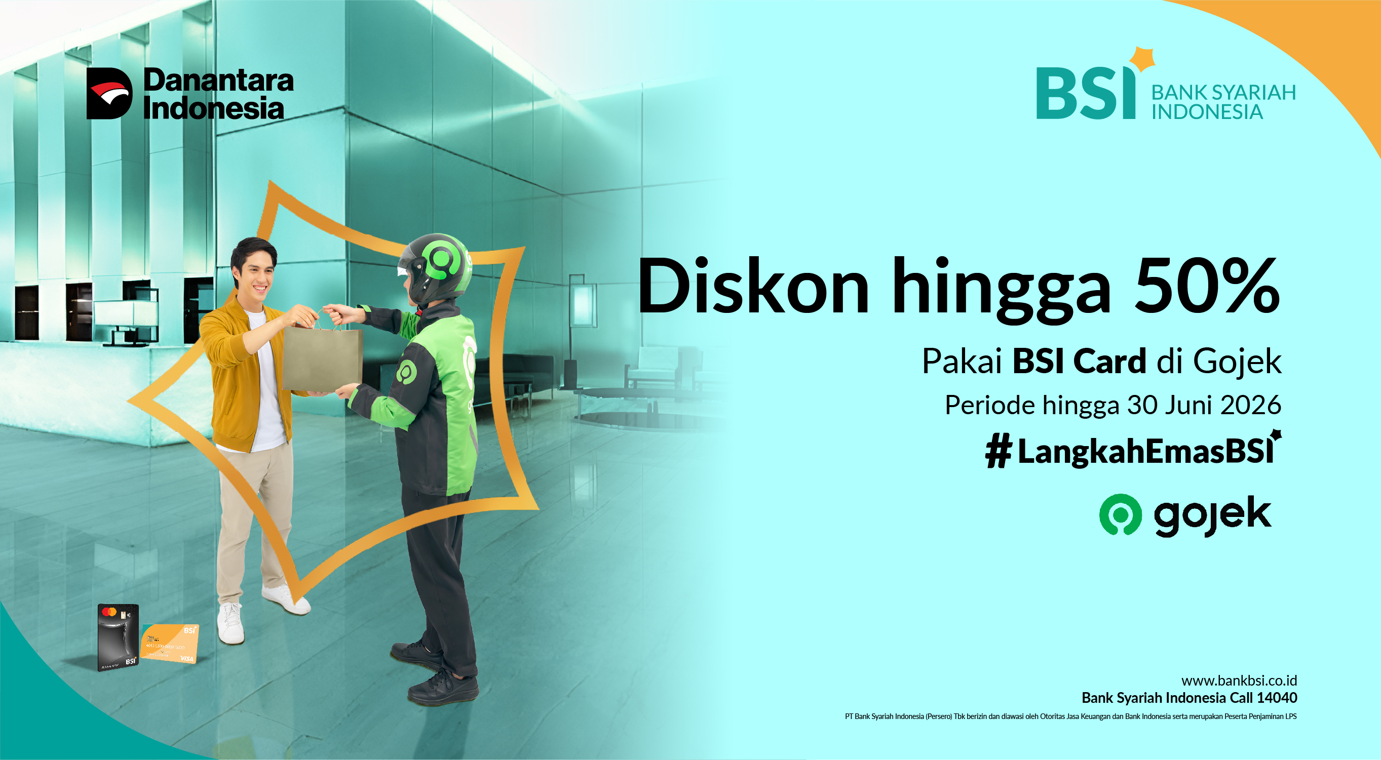 | Nama Program | Diskon hingga 50% min transaksi mulai dari Rp 20.000,- 1. Card-linked BSI Hasanah Card & BSI Debit Visa :