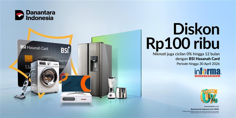 | Bentuk Program | Diskon Rp. 100.000,- dengan minimum transaksi Rp.1.000.000,- dan nikmati cicilan 0% hingga 12 bulan |