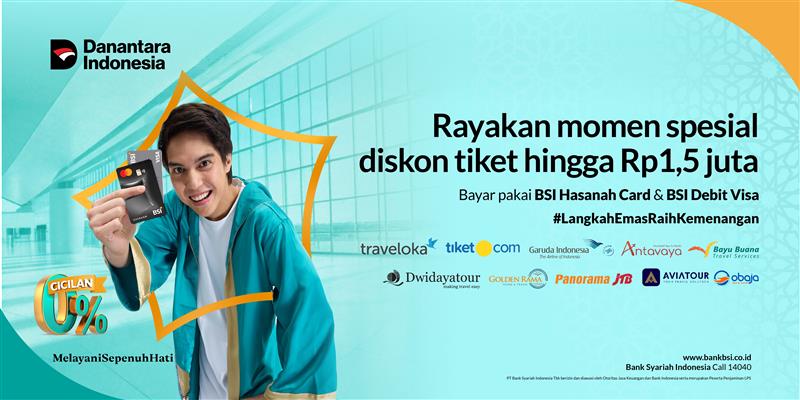 | Tiket.com | Diskon Rp 350 ribu min, transaksi Rp 5 Juta | Berlaku di aplikasi Tiket.com KODE PROMO : MILADBSI5 |