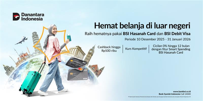 BSI Debit Visa Cashback Rp250 ribu berlaku di Saudi Arabia, Malaysia, Japan, Korea Selatan dan Singapore, min. akumulasi transaksi Rp15 juta |