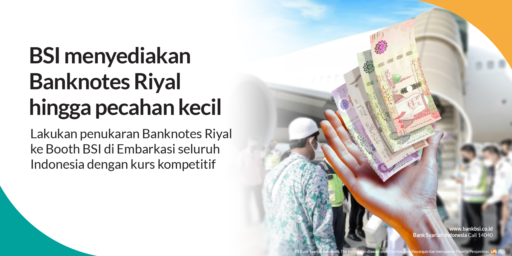 BSI membuka gerai penjualan Banknotes SAR di Embarkasi dan Embarkasi Antara seluruh Indonesia antara lain Gorontalo, Maluku, Bangka Belitung, Jambi, Aceh, Nusa Tenggara Barat, Sumatera Barat, Kalimantan Selatan, Kalimantan Timur, Sumatera Selatan, Lampung, Sumatera Utara, Kertajati, Riau, Sulawesi Selatan, Jakarta-Pondok Gede, Bekasi, Jawa Tengah dan Jawa Timur.