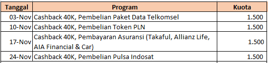 Pemberian cashback senilai Rp.40.000,- (empat puluh ribu Rupiah) atas transaksi berhasil pembayaran atau pembelian melalui BSI Mobile minimal Rp. 100.000,- (seratus ribu rupiah) |