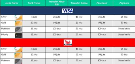 A : Berikut adalah limit transaksi kartu BSI Debit