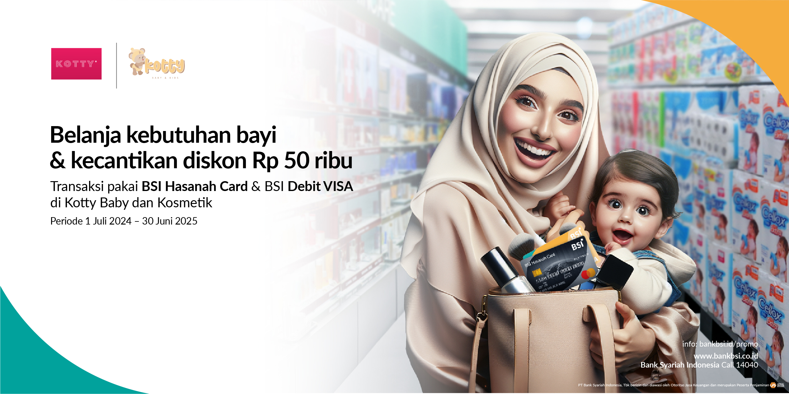 A : Promo BSI Card yang berlaku di Kotty Baby & Kosmetik adalah sebagai berikut: