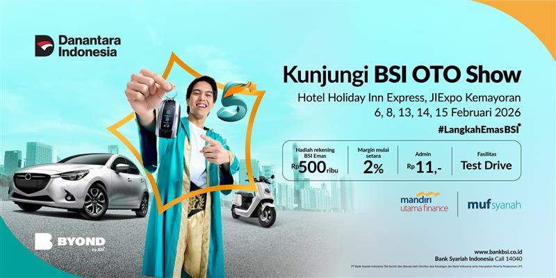 BSI OTO Show adalah acara gathering nasabah yang diadakan oleh Bank Syariah Indonesia yang bekerjasama dengan Mandiri Utama Finance dan Metland Menteng untuk memberikan apresiasi sekaligus memperkenalkan promo dan program BSI OTO kepada nasabah, termasuk promo khusus dan layanan konsultasi langsung untuk pengajuan pembiayaan kendaraan. Event ini dilaksanakan dalam rangka animo event Indonesia International Motor Show (IIMS) 2026. Pada event ini, BSI OTO menawarkan program khusus pembiayaan mobil dan motor impian, yaitu margin mulai setara 2,00%, DP mulai 0%, serta berkesempatan mendapatkan hadiah saldo e-mas s.d Rp500 Ribu. |