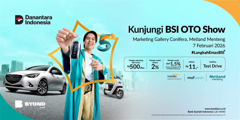 BSI OTO Show adalah acara gathering nasabah yang diadakan oleh Bank Syariah Indonesia yang bekerjasama dengan Mandiri Utama Finance dan Metland Menteng untuk memberikan apresiasi sekaligus memperkenalkan promo dan program BSI OTO kepada nasabah, termasuk promo khusus dan layanan konsultasi langsung untuk pengajuan pembiayaan kendaraan. Event ini dilaksanakan dalam rangka animo event Indonesia International Motor Show (IIMS) 2026. Pada event ini, BSI OTO menawarkan program khusus pembiayaan mobil dan motor impian, yaitu margin mulai setara 2,00%, DP mulai 0%, serta berkesempatan mendapatkan hadiah saldo e-mas s.d Rp500 Ribu. |
