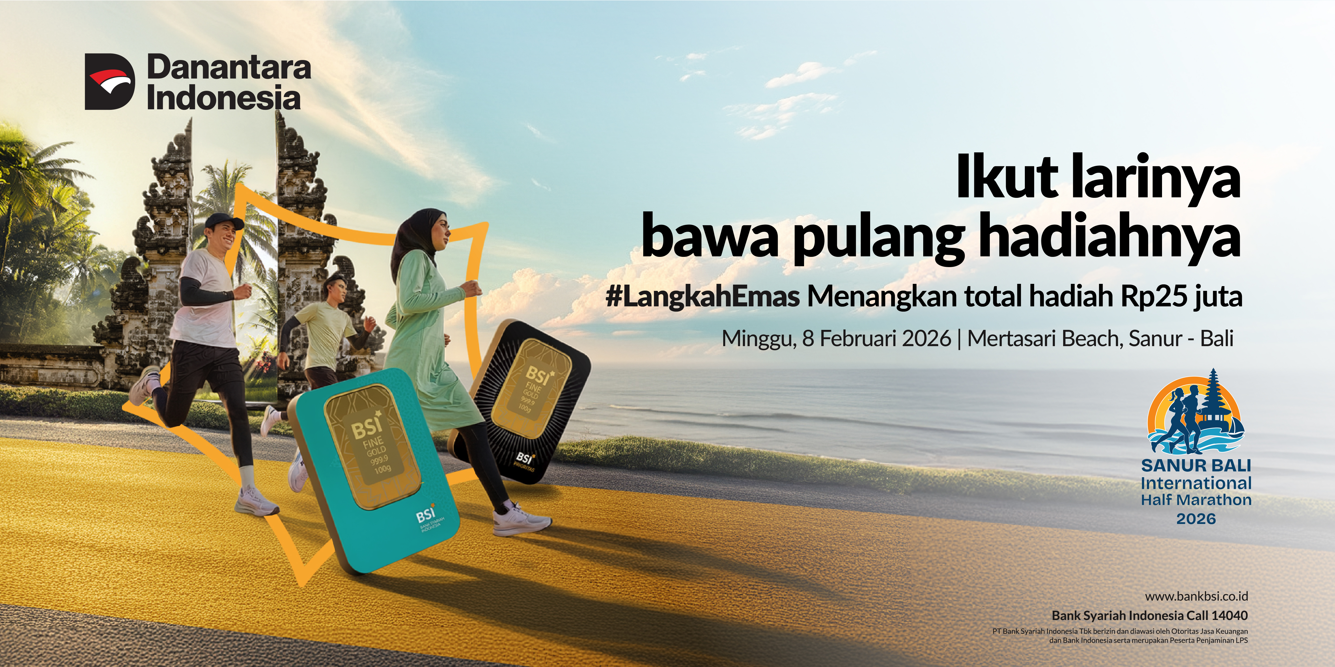 Seluruh peserta resmi BSI Sanur Bali International Half Marathon 2026 berhak mengikuti program undian ini dengan memenuhi syarat dan ketentuan yang berlaku. |