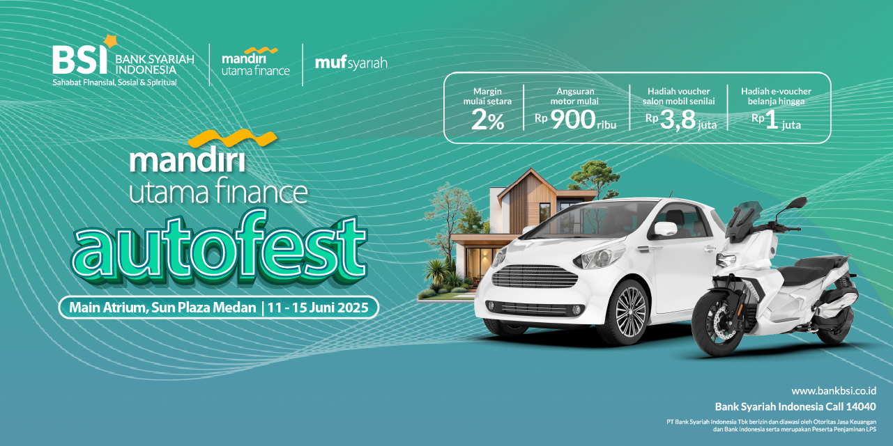 | 5 | Berhadiah asuransi Tanggung Jawab Hukum (TJH) pihak ketiga dan asuransi kecelakaan diri (Personal Accident/PA) senilai Rp10juta selama 1 tahun | Seluruh nasabah yang mengajukan pembiayaan saat event MUF Medan berlangsung dan berhasil golive maksimal 31 Juli 2025 akan mendapatkan hadiah asuransi secara otomatis dengan pembagian sebagai berikut: