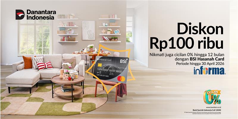 | Bentuk Program | Diskon Rp100.000, minimum transaksi Rp1.000.000 dan nikmati cicilan 0% hingga 12 bulan |