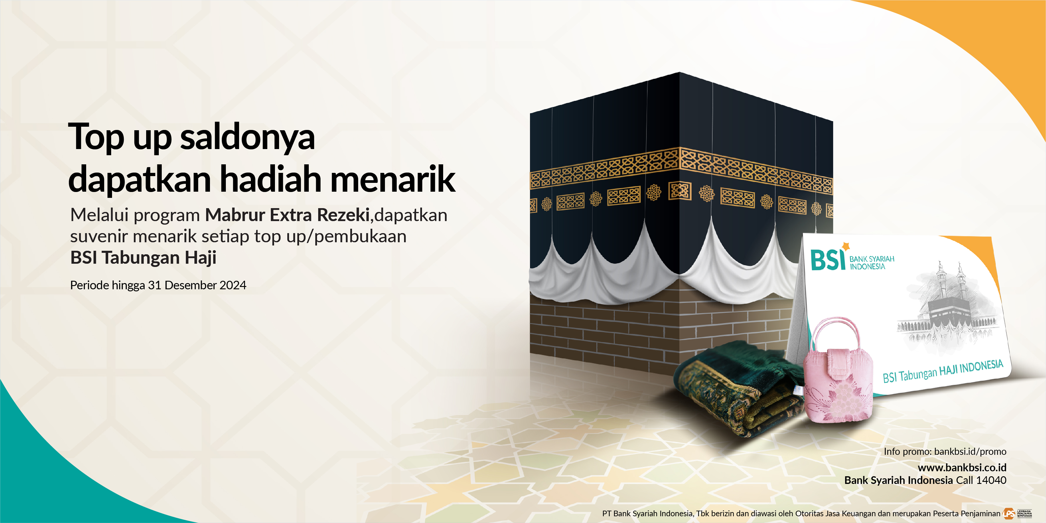 Program top up untuk meningkatkan saldo BSI Tabungan Haji Indonesia/BSI Tabungan Haji Muda Indonesia dan mendapatkan suvenir sesuai dengan nominal penempatan |