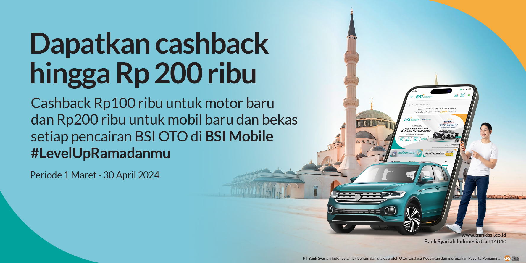 1. Nasabah akan mendapatakn cashback apabila mengajukan pembiayaan Oto Online sampai pencairan di BSI Mobile 2. Cashback berupa saldo Tabungan senilai :