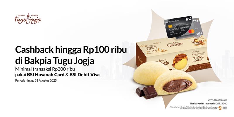 Bentuk Promo | Cashback 10% hingga Rp 100.000,- minimal transaksi Rp 200.000,- untuk BSI Hasanah Card dan BSI Debit Visa |