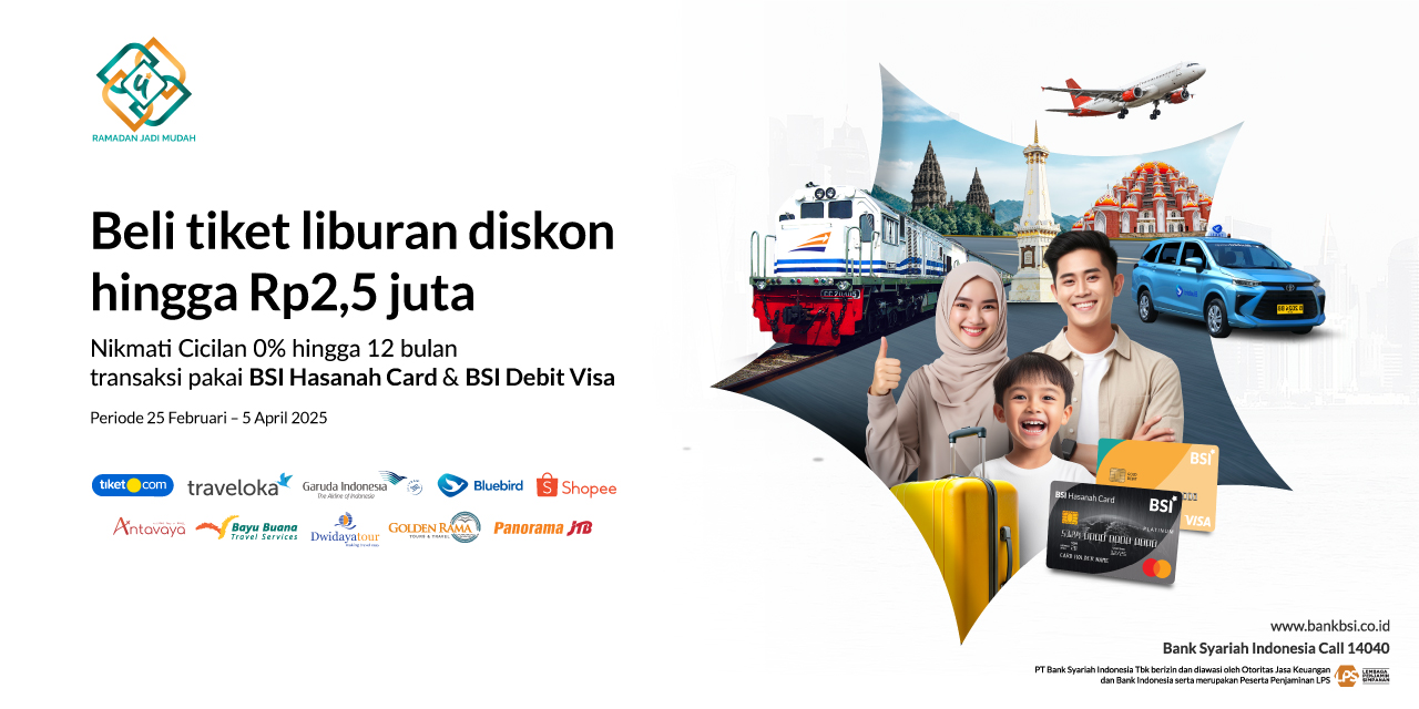 Diskon Rp 250 ribu min. transaksi Rp 5 Juta kode promo "RAYA2BSI". Kuota 15 per hari. Periode 11 Maret - 6 April 2025.