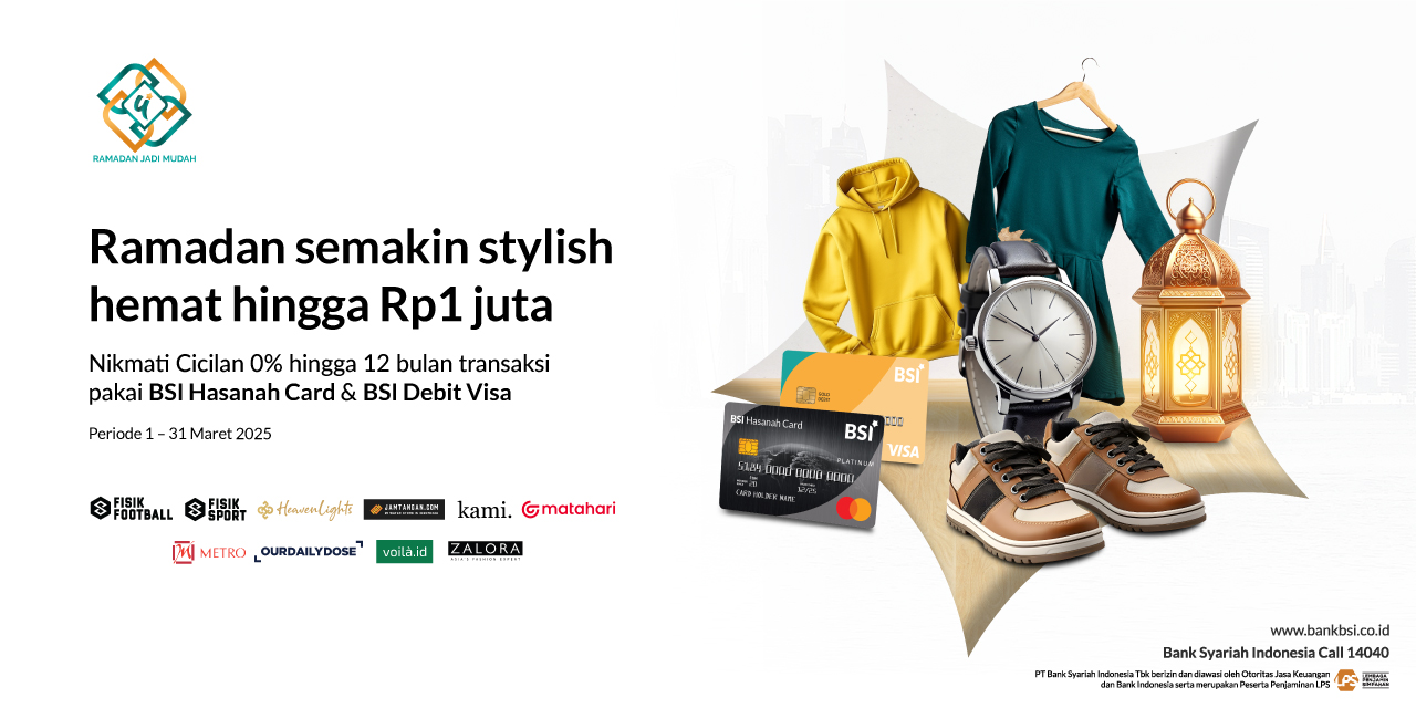 | BERLUTI | Cashback Rp 1 juta, minimum transaksi Rp30 juta | Hasanah Card Debit Visa |