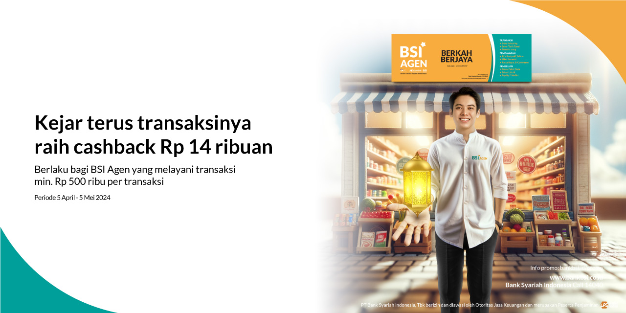 Program Cashback THR untuk Agen merupakan program untuk meningkatkan transaksi yang berlaku di BSI Agen |