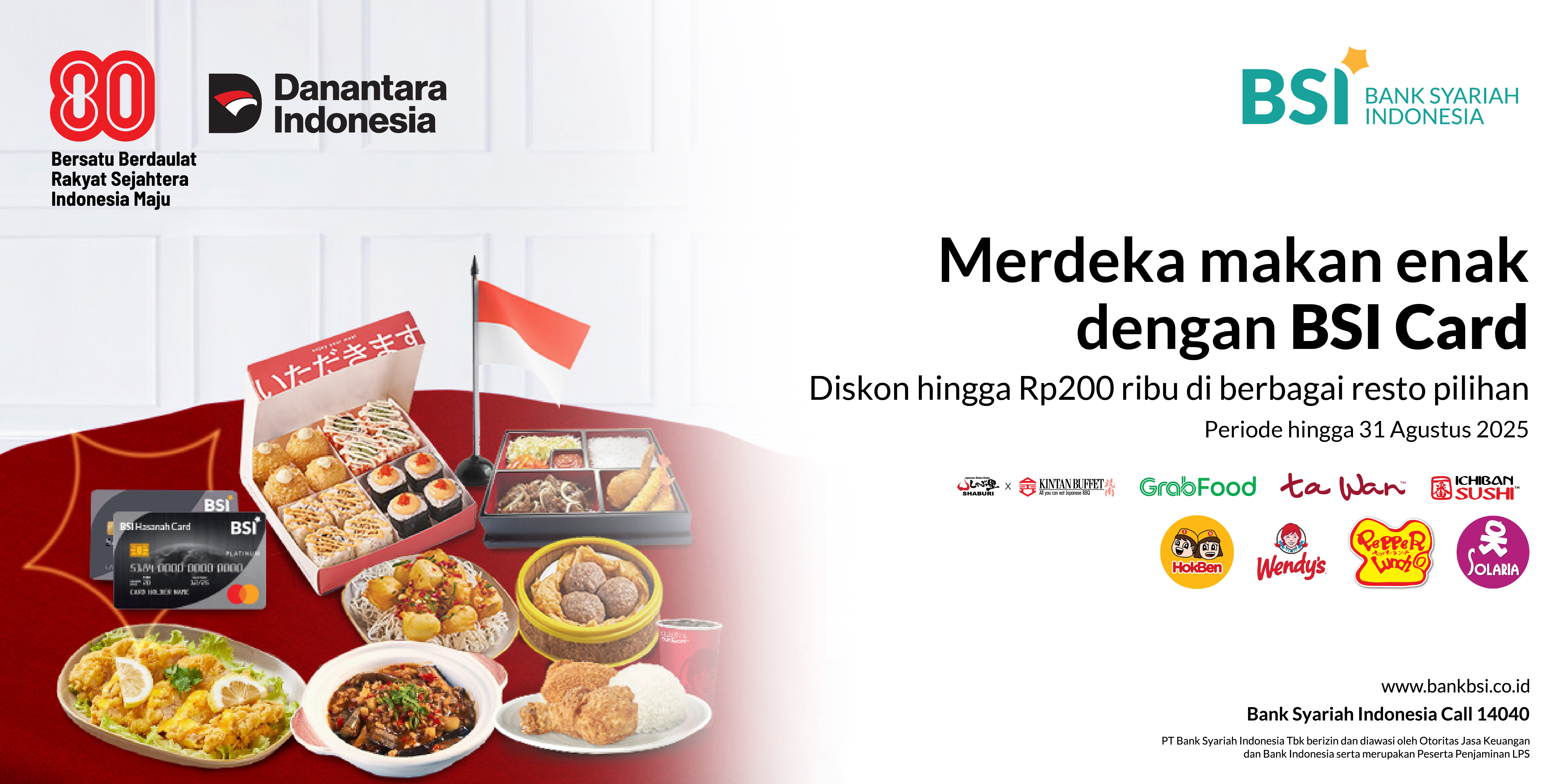 BSI Hasanah Card : Diskon Rp 17 ribu min. transaksi Rp 80 ribu |