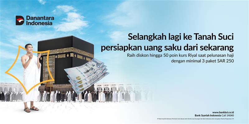 Program Diskon 50 Poin kurs Banknotes SAR dengan minimal pembelian 3 Paket SAR 250 di seluruh Kantor Cabang Bank BSI. Bagi nasabah yang akan melakukan pembelian Banknotes selama periode pelunasan haji reguler