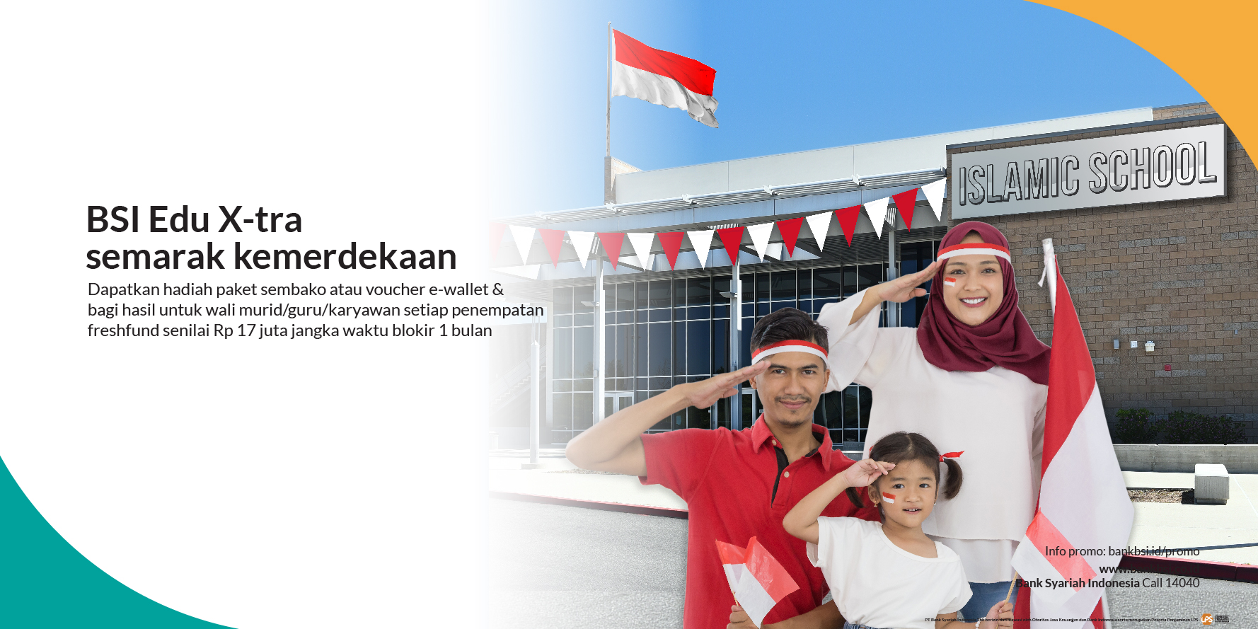 | 1. | Apa yang dimaksud dengan program/promo dan nama program/promo? | BSI Edu X-tra Semarak Kemerdekaan adalah program untuk sekolah senilai Rp17 juta dengan jangka waktu blokir dana 1 bulan |