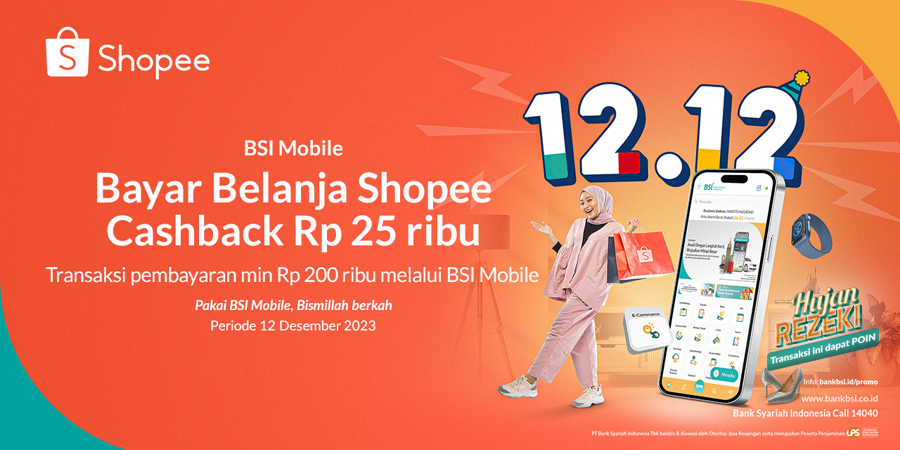 Pemberian cashback sebesar Rp.25.000,- (dua puluh lima ribu rupiah) diperuntukkan bagi nasabah yang berhasil melakukan pembayaran tagihan Belanja Shopee melalui BSI Mobile minimal Rp. 200.000,- (dua ratus ribu rupiah). |