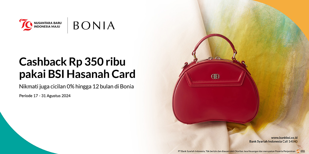 | BONIA | Cashback hingga Rp350.000 + Cicilan 0% hingga 12 bulan |