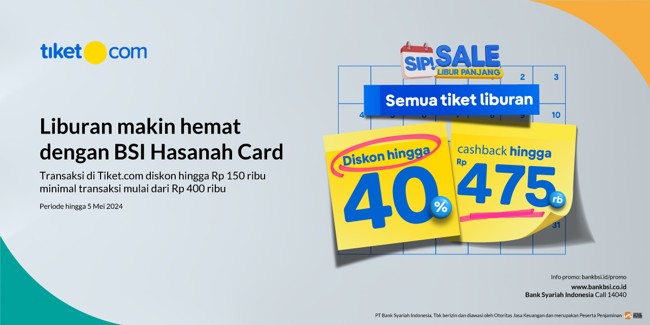 1. Q : Promo BSI apa saja yang sedang berlaku di Tiket.com ?