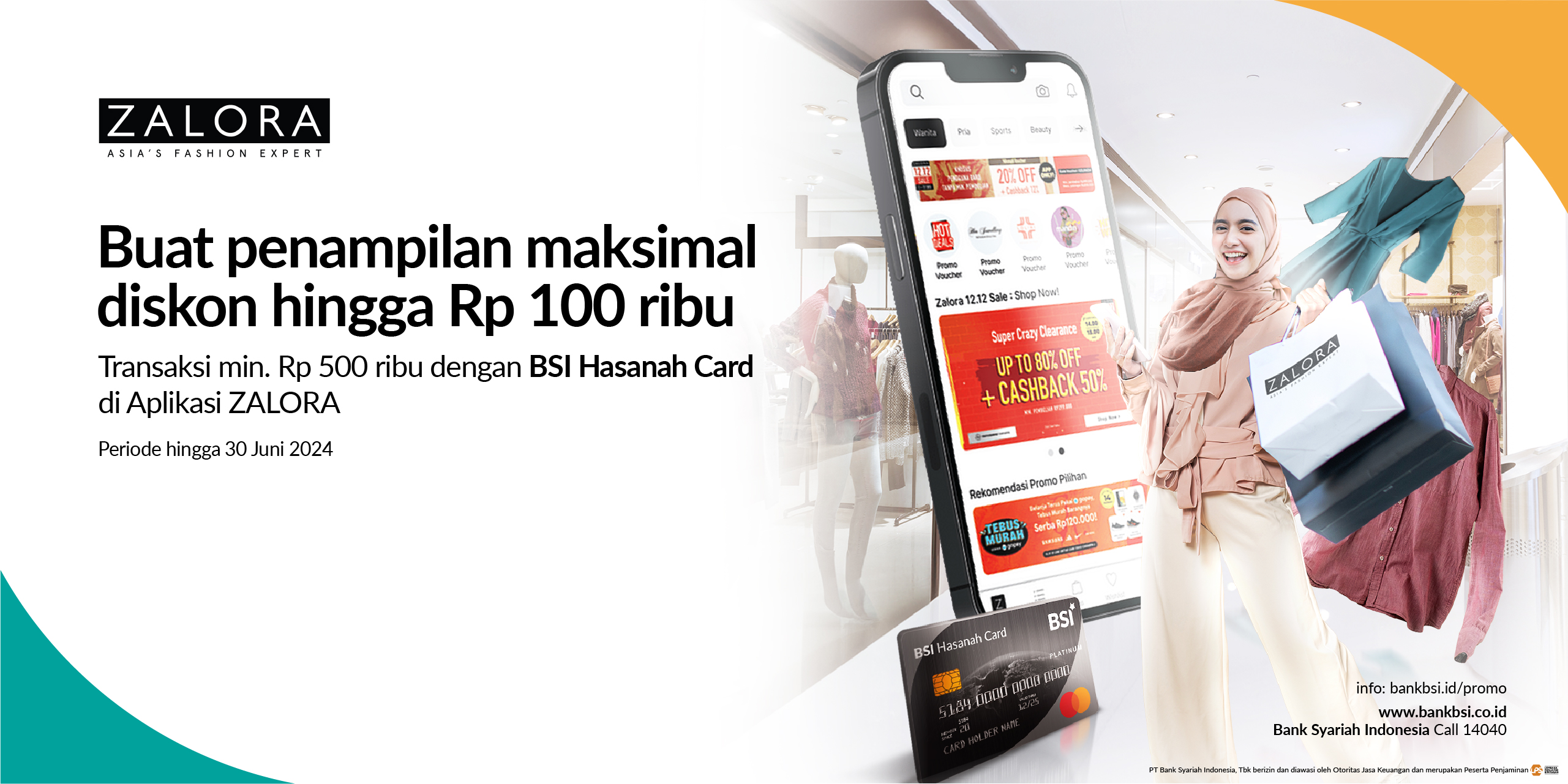 A : Promo Kartu BSI yang berlaku di Zalora adalah sebagai berikut: